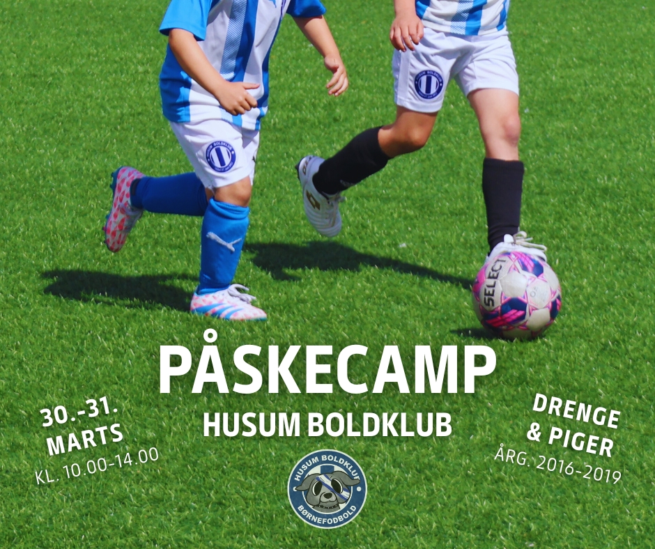 Mandag d. 30. marts og tirsdag d. 31. marts kl. 10:00–14:00 inviterer vi drenge og piger årgang 2016–2019 til en sjov og aktiv todages fodboldcamp i Husum Boldklub.