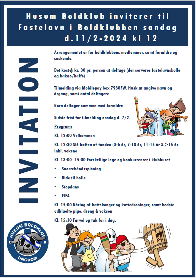 Husum Boldklub inviterer til fastelavn 11/2 (1)